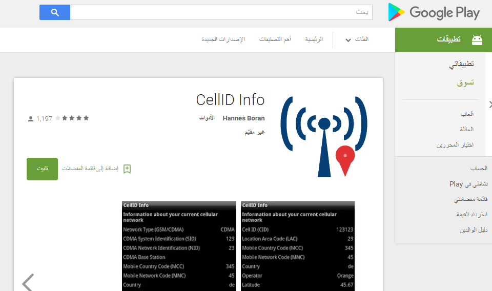 1. قم بتحميل تطبيق CellID info من على المتجر أو من هنا.