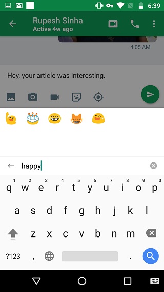 أضافت شركة جوجل في تطبيق Gboard شريط بحث مُختص للبحث عن الرموز التعبيرية Emoji إذا كُنت تريد البحث عن رمز يُعبر عن حالة مُعينة مثل السعادة “happy” أو الضحك “laugh” وستظهر لك النتائج المُتعلقة فوراً لتستخدم ما تشاء منها.