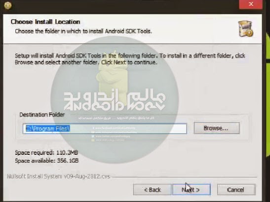4- تثبيت Android sdk tools , اثناء التثبيت يرجي اختيار مسار سهل للحفظ كما بالصورة التالية