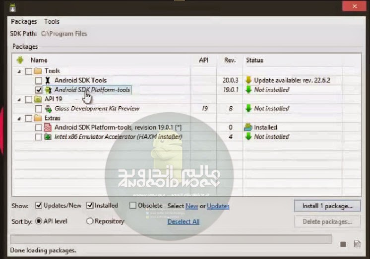 6 – ازل علامة الصح عن اى شي اخر و اترك فقط Android platform tools ثم اضغط install