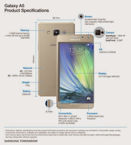 اطلقت اليوم سامسونج بشكل رسمي عن هاتفها الذكي الجديد Galaxy A5